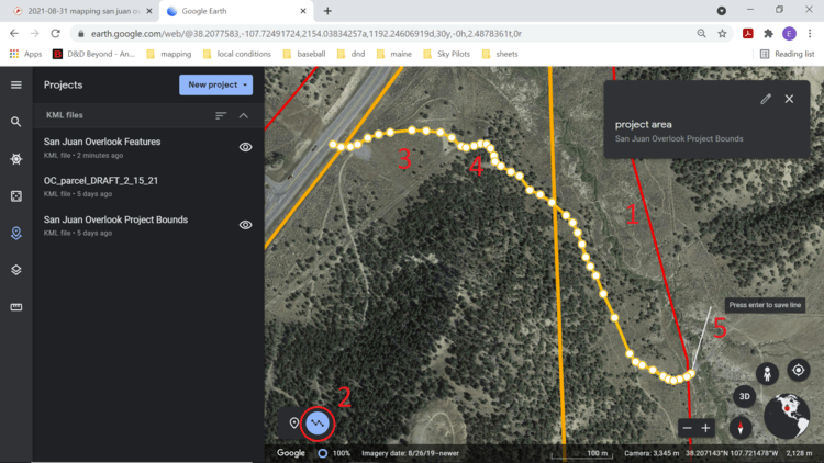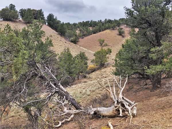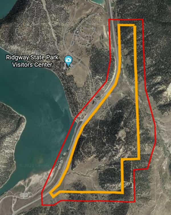 The San Juan Overlook is a rarely visited corner of Ridgway State Park in Ouray County, Colorado. We're interested in about 200 acres of wooded hills east of Highway 550. We think it would be a great area to set some beginner and intermediate courses for informal club training and practice sessions, starting with this one on October, 23, 2021.