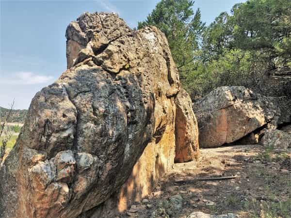 205 Large boulder. Scattered boulders occur throughout the area, but most of them are fairly small. Based on our site visits (and past experience), our tentative plan is to map every boulder that exceeds 0.5m from at least one side. Anything taller than 2m will be considered a large boulder. We think this will work out, but if the map turns out too cluttered, we’ll simply increase the thresholds as needed and then throw out any boulders that are too small. To make this work, we’ll need to collect height data for every candidate boulder.