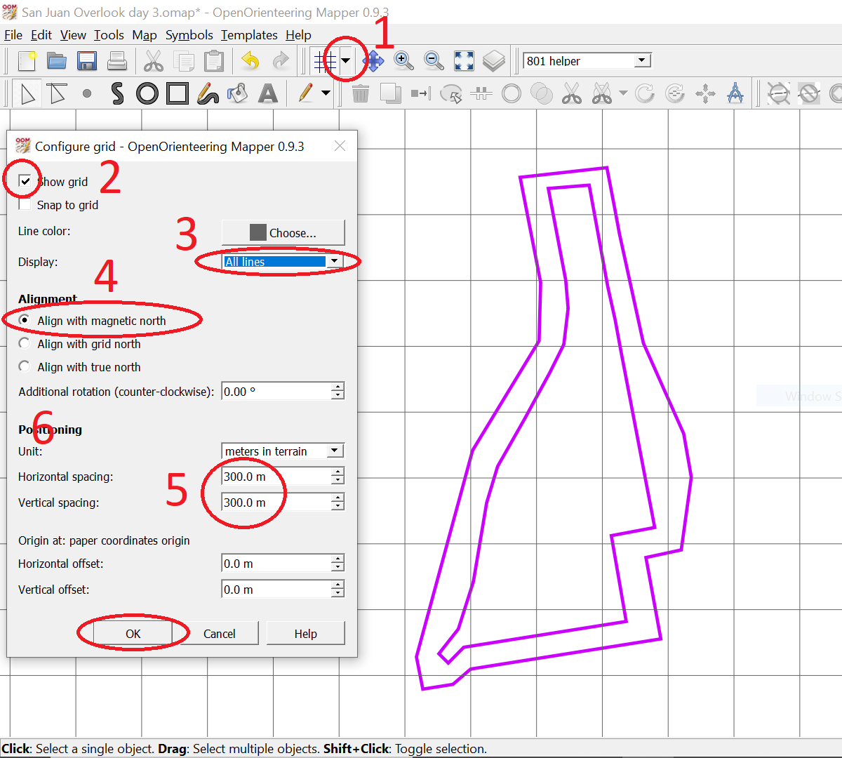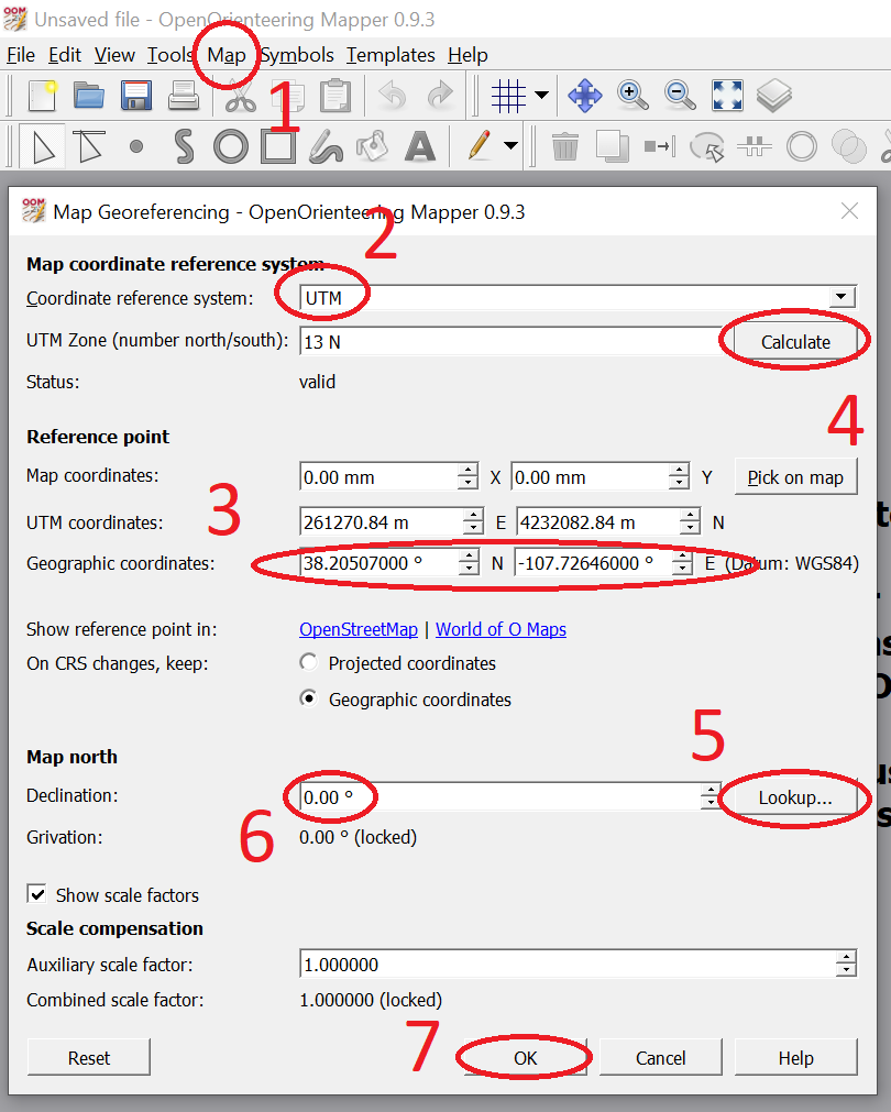 from the drop down ②. For most areas, UTM is a good choice because it is pretty good at preserving shapes, compass bearings, and linear distances—at least across the scales that are commonly encountered while orienteering.Geographic coordinates