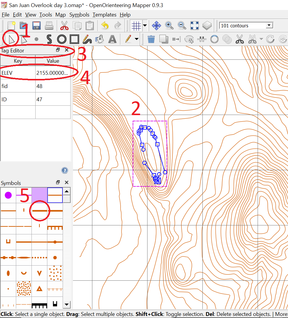 One question we don't yet have an answer to: how to handle 420 Prominent fallen tree? The usual threshold height-off-the-ground is 2m, but we'll have to verify how well that will work for the area the next time we make a site visit. Many fallen trees occur in the area. Set the value too low, and the map will be very cluttered and hard to read. Set the value too high, and runners may draw incorrect inferences from the map and suffer consequences as a result.
