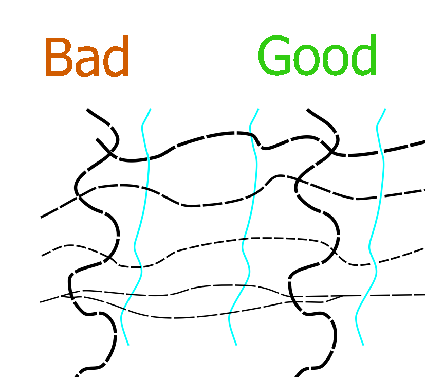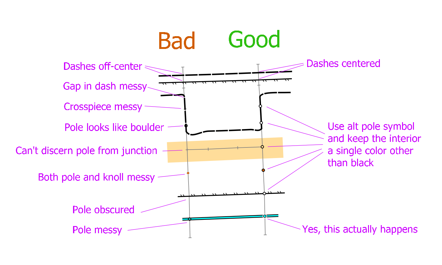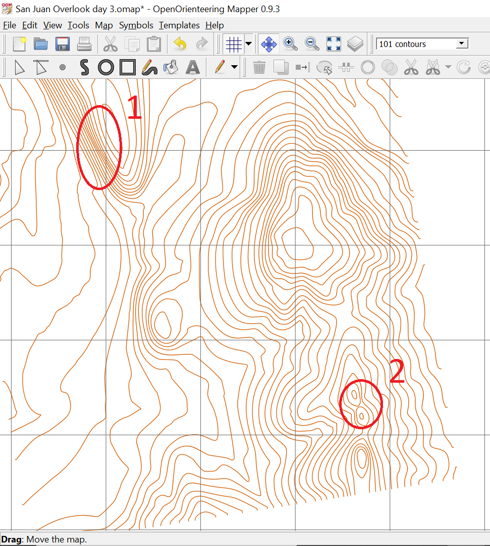 Our third priority is to correct any contours that fail to adequately represent prominent topographical features such as hills, depressions, spurs, reentrants, plateau edges, or inflection lines. It’s important to correct faulty contours before adding too many other features of lower priority to the same area of the map.