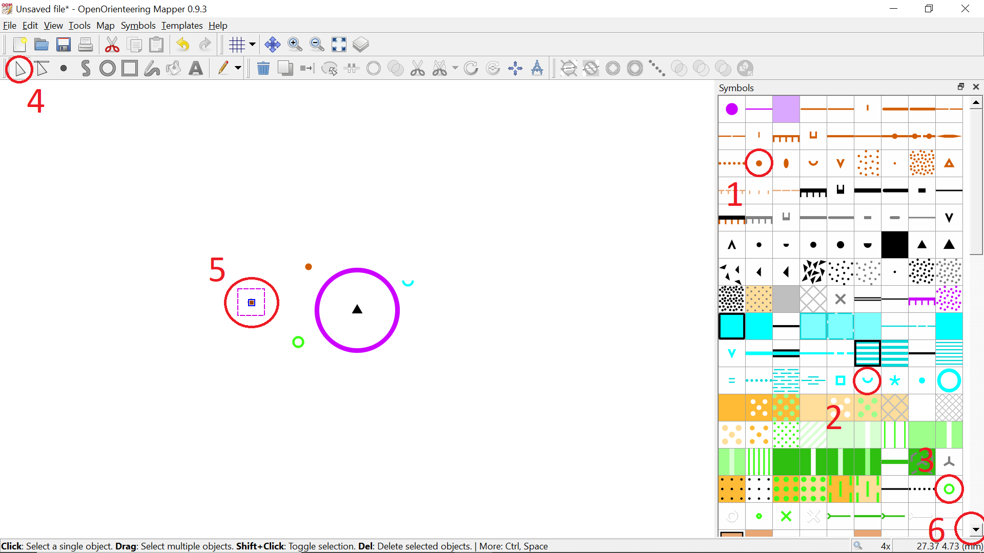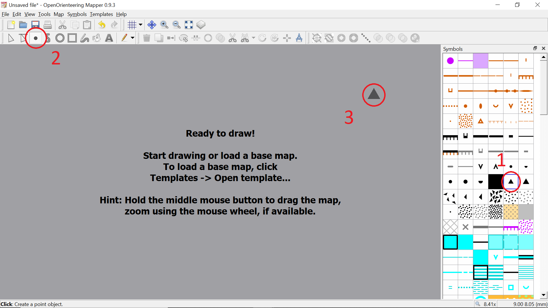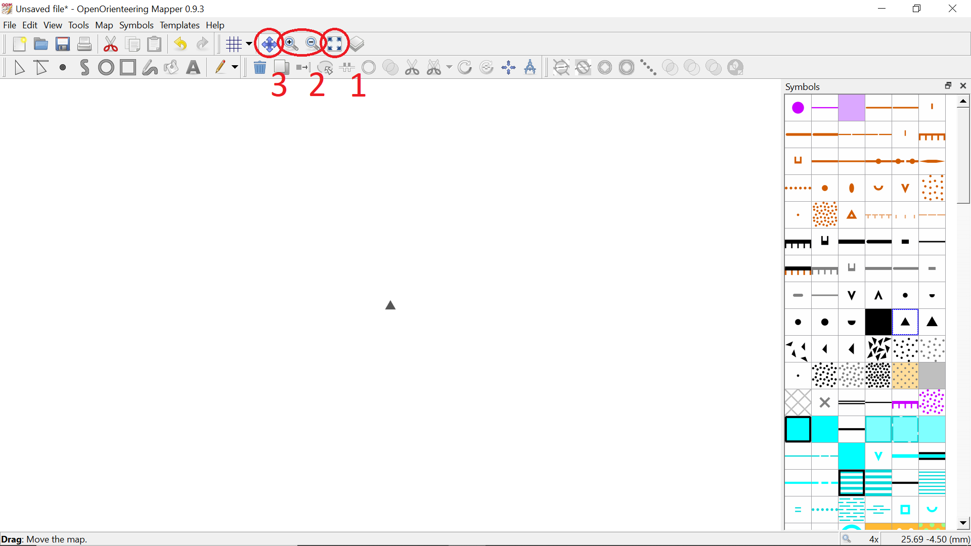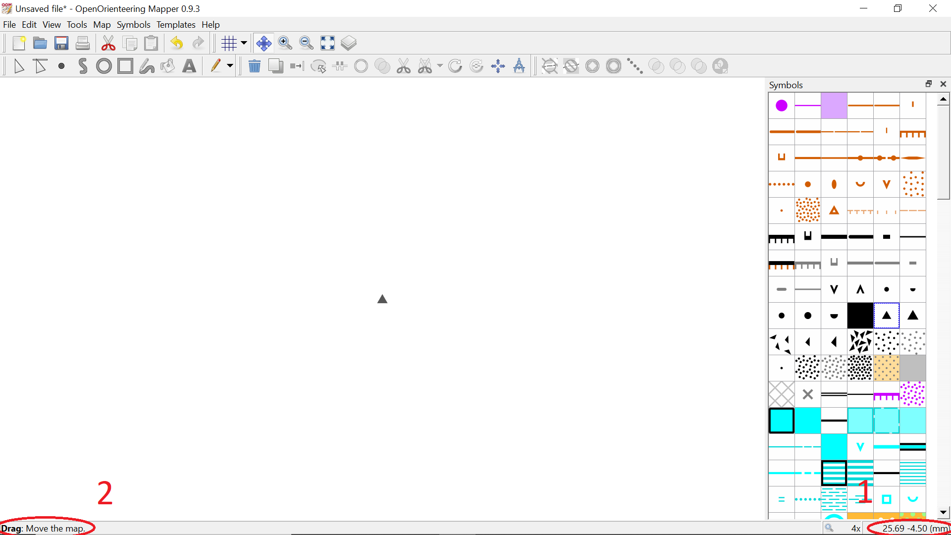 button ⑤.So far, so good. We’ve now got a blank area for drawing the map, and a palette full of cool symbols (toggle the Symbol Window on or off with CTRL-Shift-8