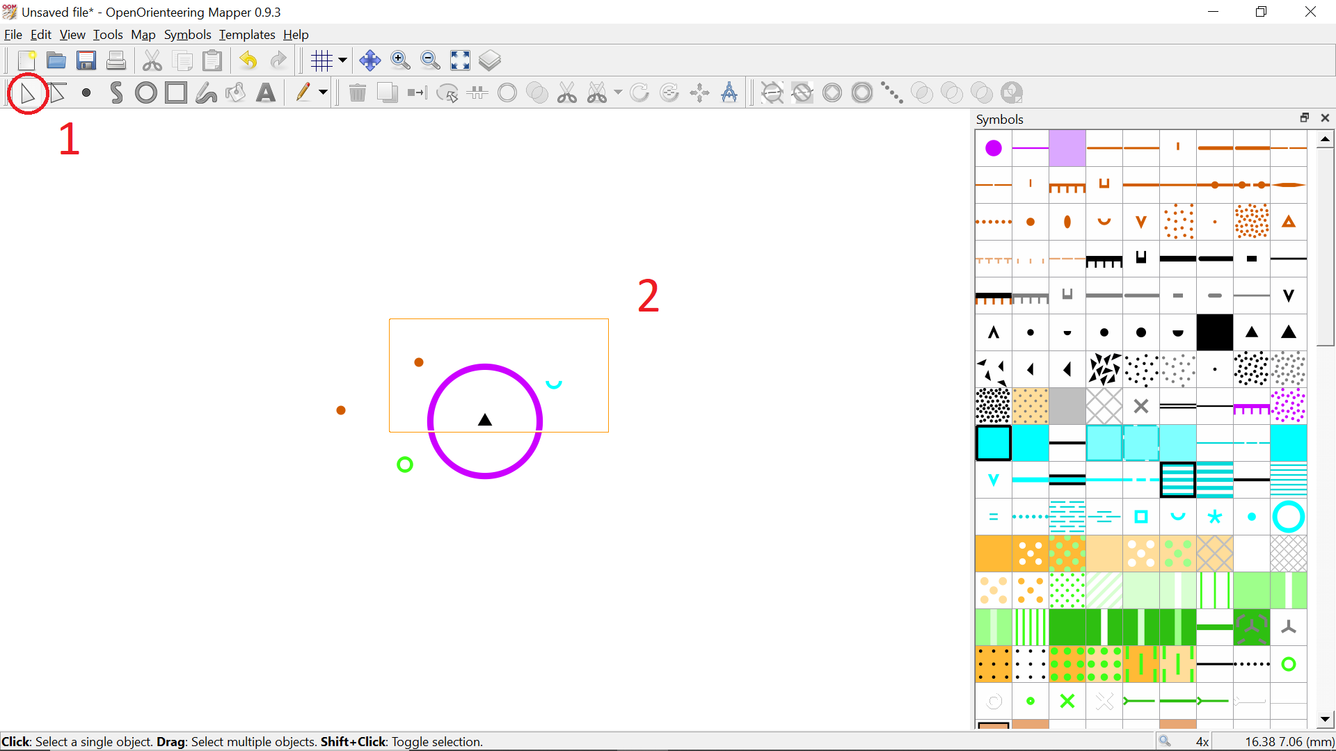 Now draw two overlapping areas using two different symbols (for instance 403 Rough open land ⑦ and